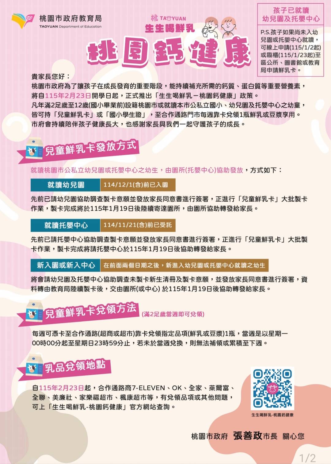 有關本市推動「生生喝鮮乳-桃園鈣健康」相關通知,敬請參閱。