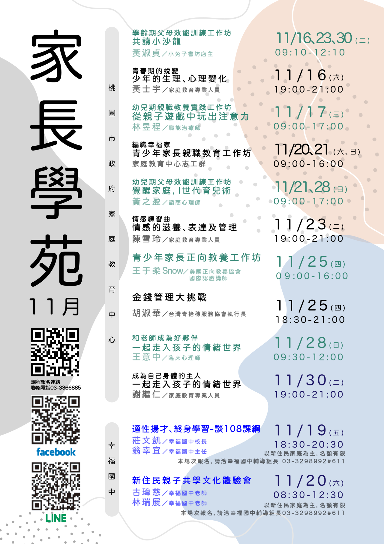 轉知家庭教育中心11月份家長學苑課程資訊